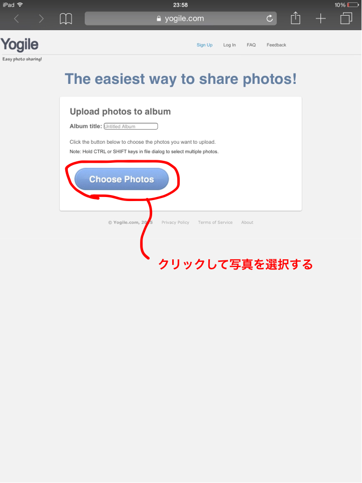 (PCの場合は写真選択時にCtrlをおしながらクリックすると複数選択できます)