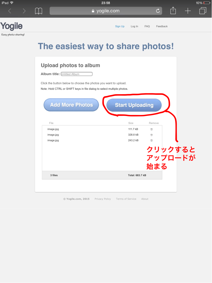 (2) 選択した写真をアップロード