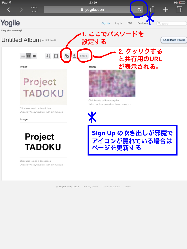 見る側は、教えてもらったURLを開けば画像を見ることができます。