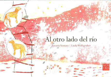 まずは、ボローニャ絵本館から借りた東洋的な風合いの絵がたまらないメキシコの絵本「Al otro lado del rio」