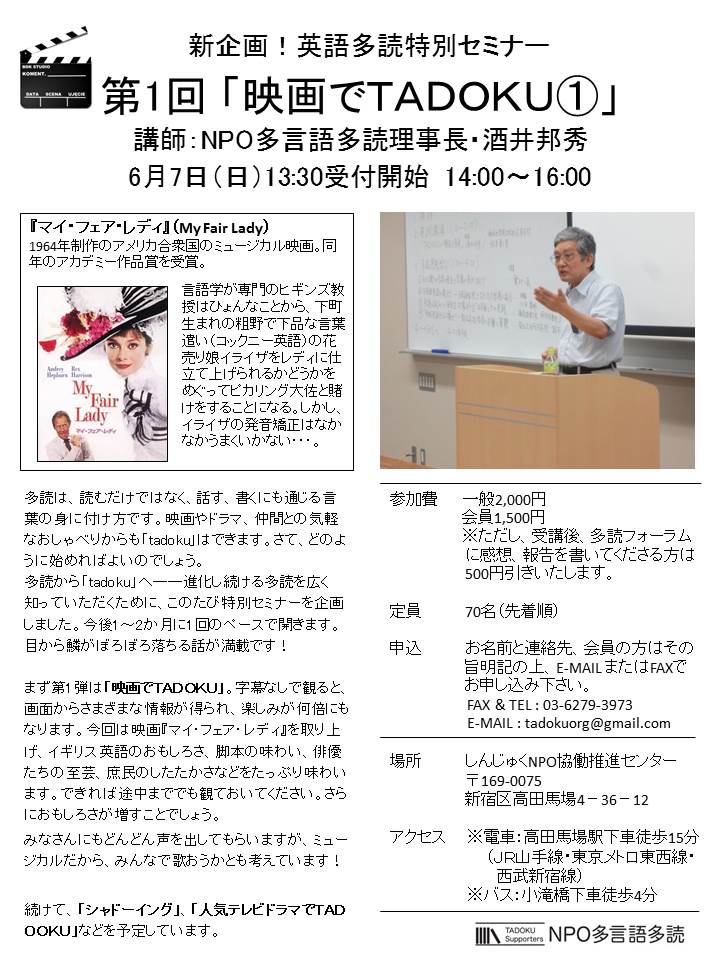 Re: 6月7日(日)英語多読特別セミナー「映画でTADOKU」報告トピック