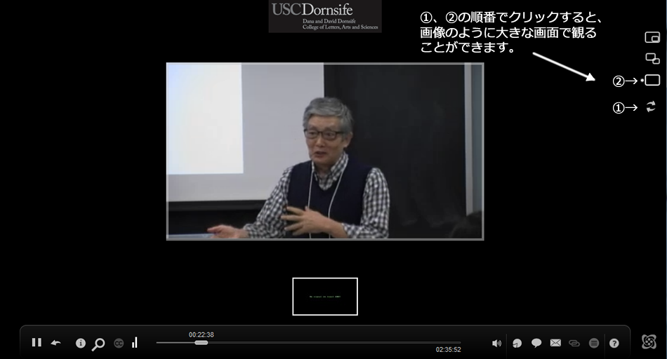 画像にあるとおり、①、②の順番でクリックしていくと講演会会場が大きくなります。