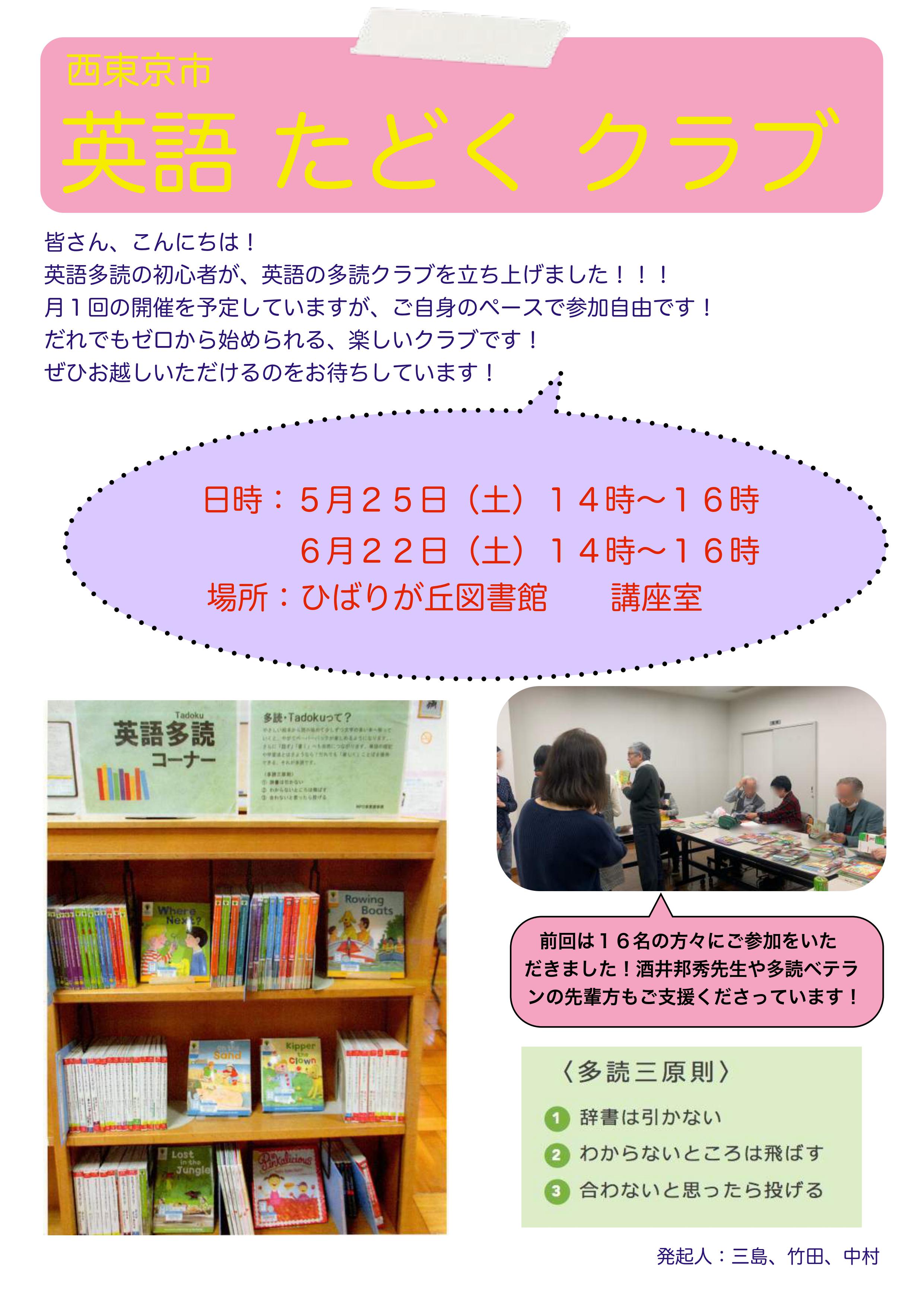 5月25日(土)西東京市英語たどくクラブ 第2回を開きます